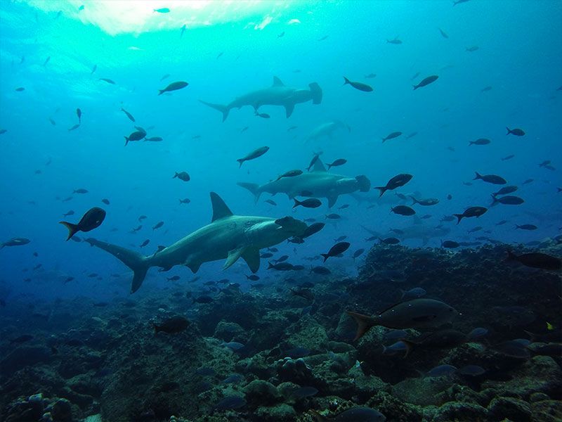 Each day includes two dives at different sites, carefully selected based on sea conditions and participant experience level. Sites like Gordon Rocks, North Seymour, Mosquera, Cousins Rock, and Bartolomé feature stunning underwater landscapes—volcanic pinnacles, reefs, walls, caves, and platforms home to hammerhead sharks, eagle rays, sea turtles, schools of barracuda, moray eels, reef fish, and more. Boat rides vary from 30 minutes to 1.5 hours, and between dives you’ll enjoy snacks, drinks, and time to relax onboard.